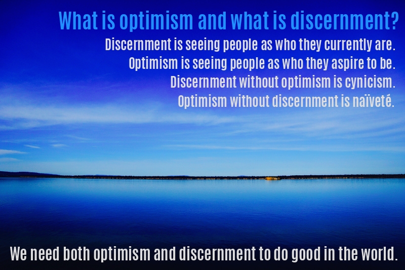 Human Behavior, Personal Reflections What is optimism and what is discernment? Posted by Deborah Chang on September 27, 2015April 26, 2018 Share this: Click to share on Facebook (Opens in new window) Facebook Click to share on X (Opens in new window) X Click to email a link to a friend (Opens in new window) Email Like Loading... Related Published by Deborah Chang I take down barriers to youth-led collective impact View all posts by Deborah Chang